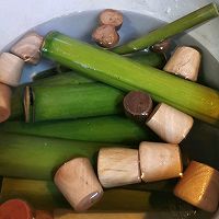 做法分解5:买来的竹筒需要刷子表面刷洗干净再开水煮一会,记得把防漏助推的小垫子装进竹筒