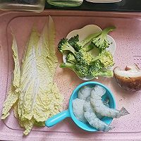 做法分解8:水开后把虾仁下锅中小火炖5分钟左右期间加点酱油和食盐还可以加点虾皮粉调味