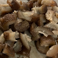 做法分解1:泡发好的海参切丁,用开水泡一分钟