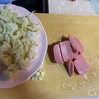 做法分解1:将洗净的花菜切小块;将洗好的火腿切片。