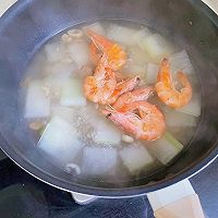 冬瓜200克,鲜虾6只,生抽5g,盐1.5克,清水500克,植物油适量,蒜3瓣,葱花适量