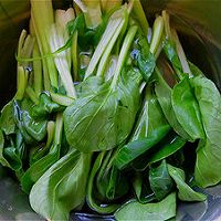 做法分解1:步骤1油菜去根去老叶清洗干净
