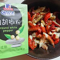 做法分解5:加入适量的开水尽量没过虾尾、半勺白砂糖(白糖有复合的口味,稍微加一点辣中带一点甜味儿更好吃)小火开始炖虾尾。