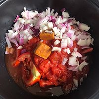 做法分解4:加水,因为西红柿本身会出一部分水,所以水加多一点少一点都无所谓。不过尽量控制在500ml以内,不然后期要煮很久才能收汁。