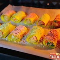 做法分解17:放入烤箱,上下火180度,烤5分钟就能开吃了。