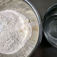 做法分解1:酵母忘了入图。酵母用少量的水先化开,有利于发酵。材料准备好,猪油、盐和面粉放在一起,水不要一次加进去,留一点。