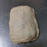 做法分解5:面团发好后,拿出来不用揉,拍一拍直接擀,要撒手粉