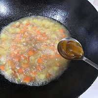 做法分解6:烧到土豆软烂,加入2勺咖喱酱搅匀