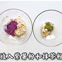 糯米粉150,鸡蛋一个,牛奶110克,玉米油30克,白砂糖30克,紫薯粉10克,抹茶粉2克克