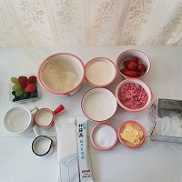 做法分解2:1??将饼干碎与室温软化的黄油搅拌均匀压入模具中,放入冰箱冷冻半小时。2??吉利丁片泡入冷水中备用,淡奶油加白砂糖打发至湿性发泡,草莓加水打成果泥按3:2:1的比例分成三份。3??吉利丁片隔水融化后加入酸奶中搅拌均匀4??将拌好的酸奶倒入淡奶油混合均匀,平均分成四份。将果泥分别加入三份酸奶慕斯中,调成由深至浅的三个颜色的慕斯,一份酸奶慕斯保持原色。5??将钟薛高雪糕塑料盒包裹一层锡纸定型,再包裹一层保鲜膜,固定在方形慕斯模具中间。将草莓酸奶慕斯液由深至浅倒入模具中,每一层倒入后需冷冻15分钟再倒入下一层,最上层灌入白色酸奶慕斯至模具的9分满。冷冻一小时。6??制作淋面层:水和牛奶,糖锅中加热,加入泡软的吉利丁融化至均匀无颗粒。滴入色素冷却至不烫手后倒在草莓酸奶慕斯上,冷冻10分钟左右。