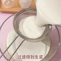 做法分解3:将熟浆倒回剩余生浆中,同样也是边倒边迅速搅拌均匀,得到马蹄生熟浆。