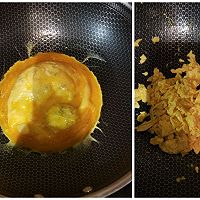 做法分解2:热油,将鸡蛋倒入锅中,捣成块状,出锅备用。