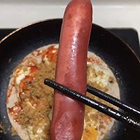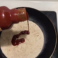 卷饼一张,鸡蛋三个,肉松适量,烤肠一根