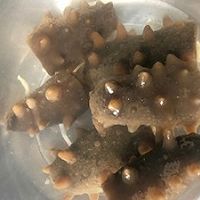 做法分解1:将海参切开,为了裹上汤汁入味。