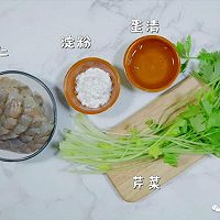 虾仁200克,芹菜30克,蛋清30克,淀粉10克,玉米油/柠檬/鲜菇粉适量