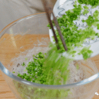 做法分解6:在虾泥当中加入芹菜碎,并且再次搅拌均匀。