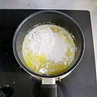 做法分解2:小奶锅中放120毫升水,55克黄油,1克盐