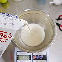 做法分解13:低速打发,如图,打发好的奶油细腻,不流动