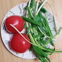 做法分解2:再准备好西红柿,香葱、蒜、香菜。