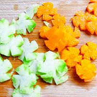 做法分解10:做小配花,红的胡罗卜,绿的西兰花根部