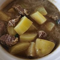 牛里脊260克,土豆2个,大葱半根,姜6片,蒜3个,八角2克,香叶1片,冰糖少许,盐2克,料酒2勺,生抽1勺,老抽1勺,耗油1勺