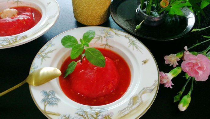 一家网红餐厅把普通的番茄做成了招牌菜,色泽鲜亮,口感酸甜Q弹的番茄虾滑团,征服了无数爱美女孩子,颜值完美在线。
