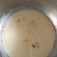 做法分解5:鸡蛋和牛奶隔热水搅拌均匀