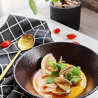文蛤8个,鸡蛋3个,虾汤50克,虾头50g,盐1小勺,姜3片,香菜少许,油2汤匙