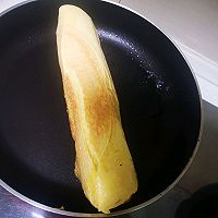 做法分解2:锅里小火煎饼,熟了卷起来,在一侧继续倒和好的面粉蛋液,继续卷,加了两次蓝莓酱。