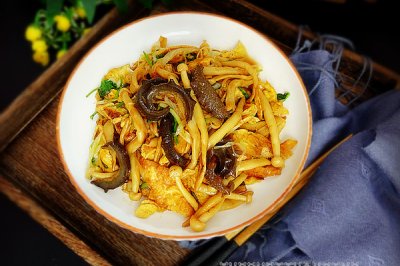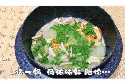 做法分解6:锅里放几滴油放入金针菇姜丝