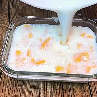 做法分解6:6.牛奶芒果丁倒入容器中,放凉