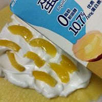 鸡蛋3个,牛奶280克,低筋面粉128克,食用油25克,蛋白液300克,白砂糖40克,黄桃(切片)半个