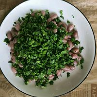 做法分解3:煮花生的时候,把韭菜洗干净切成细沫。