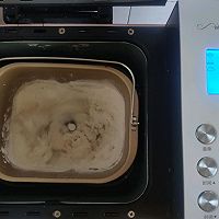 做法分解7:面包机搅拌模式开启,一个程序20分钟(天热液体部分要用冷藏过的,控制面团温度)
