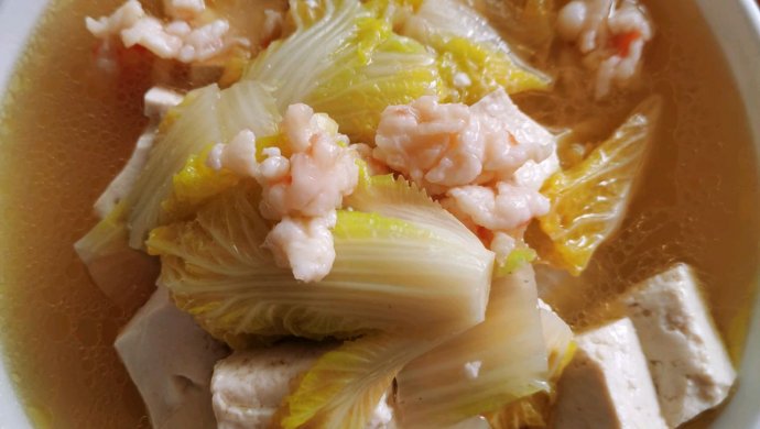 鸡汤另起锅然后放入切好的娃娃白,开火煮熟,然后下入虾仁和豆腐煮两分钟,最后放盐调味,出锅啦!来自凡人凡心tcnk的作品。