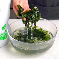 做法分解2:15克出海纪裙带菜清水泡发,源自无污染的纯净海域,无暗斑黄叶,富含多种营养物质,入口如丝绸般鲜滑、高钙高锌低热,食用更放心;