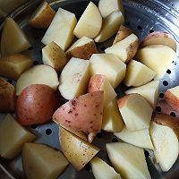 做法分解1:土豆切块,洗净,带皮蒸熟