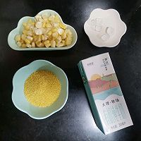 玉米粒50克,小米30克,冰糖4-6颗,牛奶200克,清水200克