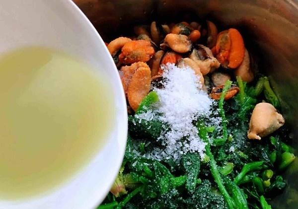 3、将水煮开加盐之后在放入西兰花,带将西兰花煮的差不多的时候,拿出来放在鳕鱼周围就好咯。