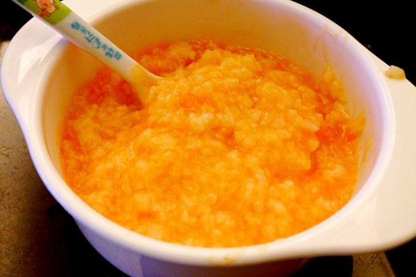 做法:鳕鱼去骨,胡萝卜切末煮熟,放入米粥搅拌。
