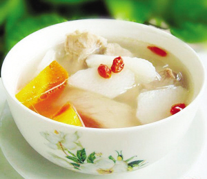 排骨适量、山药30克、胡萝卜30克、稀饭30克、姜适量、盐适量