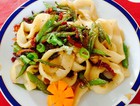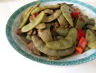 供蔬菜食用的嫩扁豆荚,因荚色不同,有白扁豆、青扁豆和紫扁豆三种。凡荚皮光亮、肉厚不显籽的嫩荚为好,炒食时肉嫩肥厚、清香味美;若荚皮薄、籽粒显、光泽暗则已老熟。