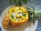 菠萝被视为一种代表吉祥水果.果肉柔软酸甜、营养丰富,既可生食、又能入菜,还能加工成菠萝罐头等,属于多用途高经济作物。菠萝富含维生素B1,可以消除疲劳、增进食欲。所含有的凤梨酵素则有助食物中的蛋白质分解,利于人体吸收,饱餐之后来几片凤梨可去油腻、帮助消化。菠萝中钾含量高,适合做为高血压患者烹煮食物的调味剂,以取代盐的使用量。