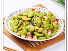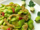 买新鲜蚕豆时一定要剥开蚕豆看一下,要挑选蚕豆上的筋是绿色的,那种蚕豆是新鲜的。皮薄肉嫩,吃口软糯。如果筋的颜色变黑,那就说明这蚕豆不新鲜了,而且皮厚肉硬,口感不好。