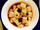 臭豆腐,其名虽俗气、外陋内秀、平中见奇、源远流长,却是一种极具特色的风味,古老而传统,一经品味,常令人欲罢不能,一尝为快。吃臭豆腐,可以增加食欲,还能起到防病保健的作用。臭豆腐以优质黄豆为原料。制作工艺较为复杂,黄豆经过筛选、脱壳、浸泡、磨浆、过滤、煮浆、点浆、成型、划块、发酵等十道工序。呈贡臭豆腐质地软滑,散发异香。先人赞誉云:“味之有余美,玉食勿与传”。它不仅有很高的营养价值,而且有较好的药用价值。其实,臭豆腐属于发酵豆制品,制作过程中不仅会产生一定的腐败物质,还容易受到细菌污染,从健康角度考虑,还是少吃为好。