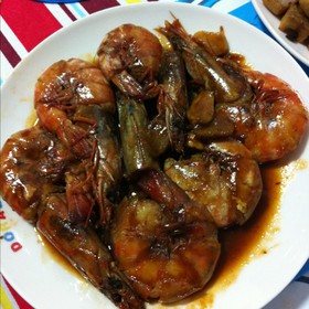 对虾(Penacus orientalis),学名东方对虾,又称中国对虾、斑节虾。节肢动物门,甲壳纲,十足目,对虾科,对虾属。对虾属个体大,通称大虾。雌性成长个体体长一般16~22厘米,重约50~80克,最大的可达30厘米,重250克;雄性较小,体长13~18厘米,重30~50克。对虾为广温广盐性海产动物。体呈长筒形,左右侧扁,身体分为头、胸和腹部,由20个体节组成。腹部较长,肌肉发达,分节明显。