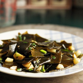海带,是海藻类植物之一,是一种在低温海水中生长的大型海生褐藻植物。因其生长在海水,柔韧似带而得名。海带主要是自然生长,也有人工养殖,多以干制品行销于市,质量以色褐、体短、质细而肥厚者为佳。 海带是一种褐藻,藻体褐色,一般长2-4米,最长达7米。可分固着器、柄部和叶片三部分。固着器叉形分枝,用以附着海底岩石。柄部短粗,圆柱形。叶片狭长,带形。生长于水温较低的海中,分布于我国北部沿海及朝鲜、日本和苏联太平洋地区沿岩。我国北部及东南沿海有大量养殖。