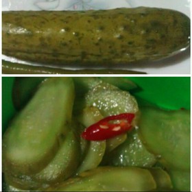 劣质黄瓜:色泽为黄色或近于黄色,瓜呈畸形,有大肚、尖嘴、蜂腰等,有苦味或肉质发糠,瓜身上有病斑或烂点。