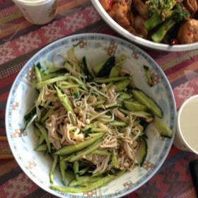 黄瓜又名胡瓜,为张骞出使西域得以引种,故名。本品生熟均能食用。黄瓜含葡萄糖、半乳糖、精氨酸、核黄素和维生素C等。黄瓜头苦味部为葫芦素A、B、C、D。葫芦素C有抗肿瘤作用,且黄瓜藤有良好的降压和降胆固醇的作用。