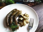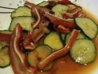 次质黄瓜:瓜身弯曲而粗细不均匀,但无畸形瓜,或是瓜身萎蔫不新鲜。